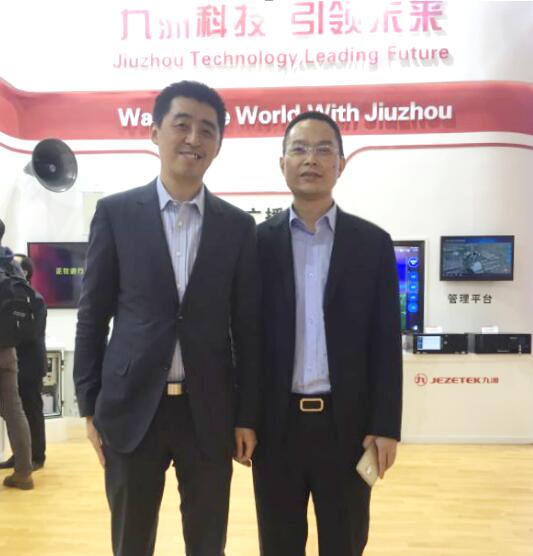 深圳市九洲電器有限公司總經(jīng)理李紅滿(mǎn)(右)與視若飛CEO王曄(左)在CCBN2016的合影