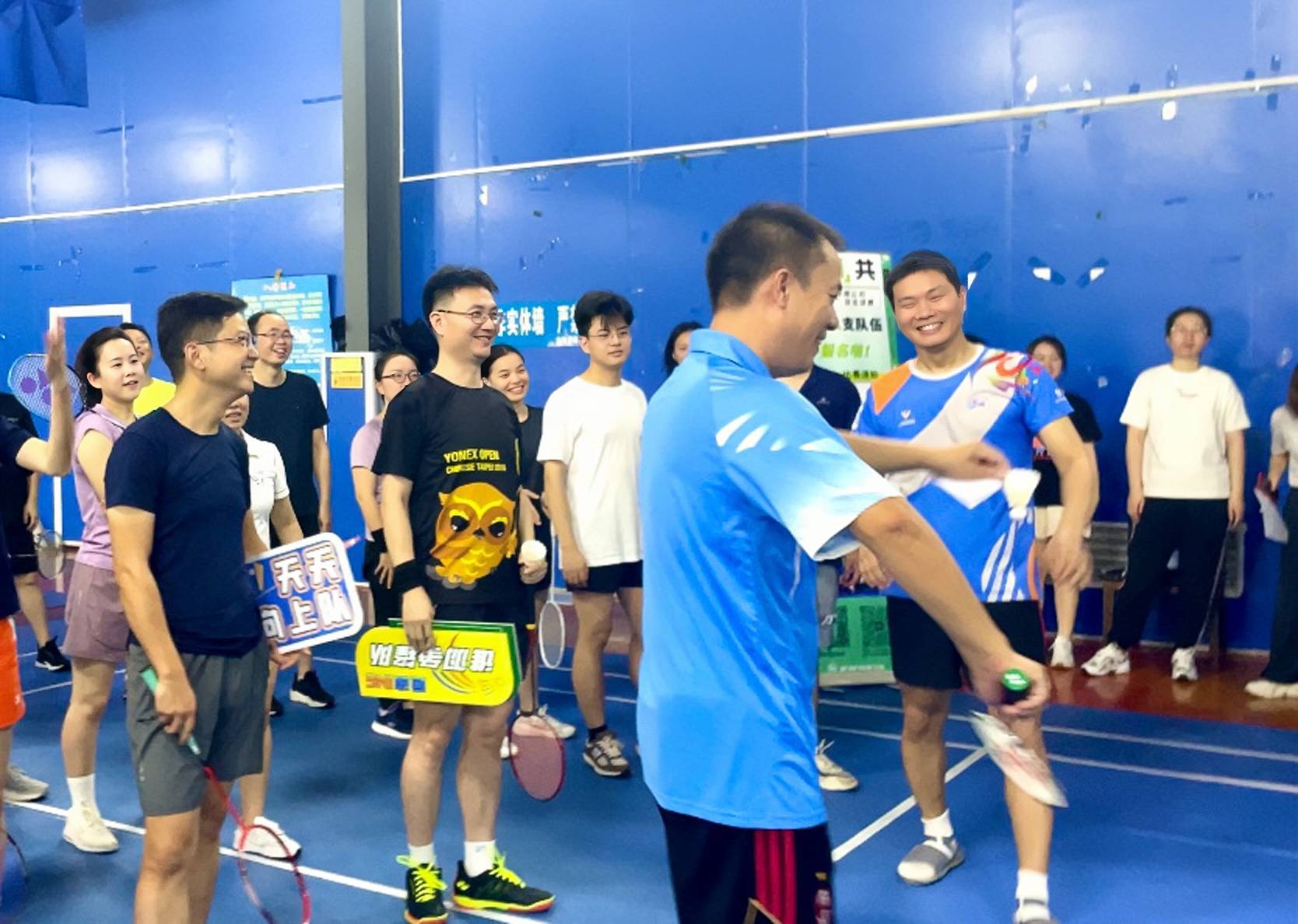 比賽正式開始,平時(shí)在工作中干勁十足的同事們,在球場上同樣的斗志昂揚(yáng)。你來我往,你守我攻;小小的羽毛球在持續(xù)的擊打聲中,劃過一道道白色的弧線;一次次揮臂、跨步、登跳、吊球、扣殺,都充滿力量、熱血沸騰。加油聲此起彼伏,活動(dòng)熱度持續(xù)升溫、現(xiàn)場氛圍更是愈發(fā)熱烈。